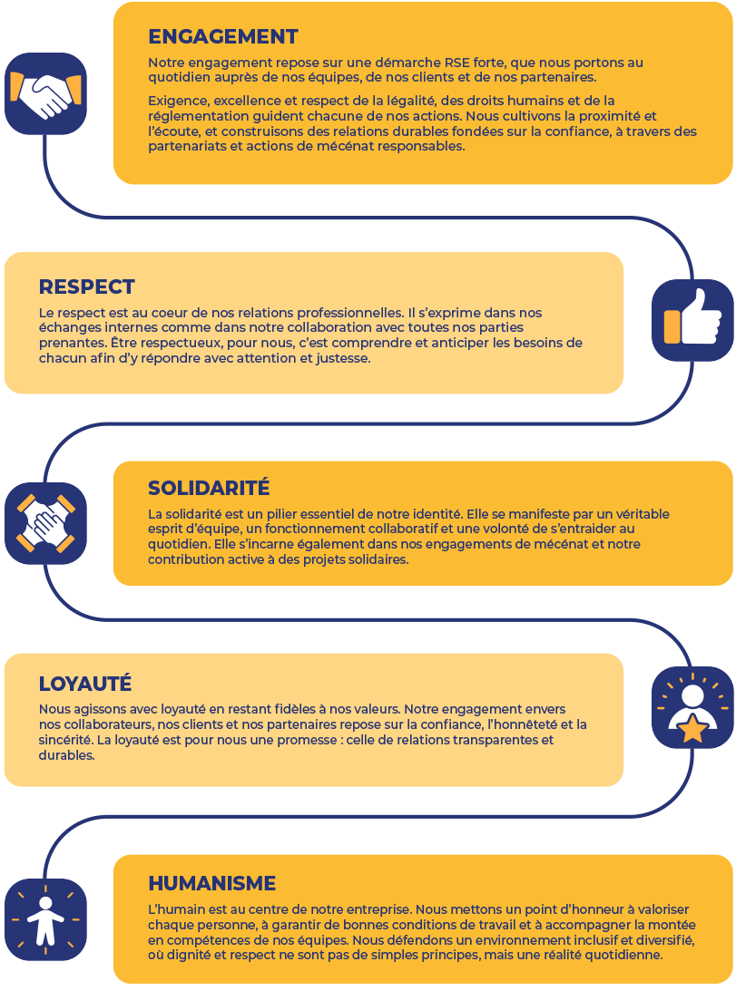Notre engagement repose sur une démarche RSE forte, que nous portons au quotidien auprès de nos équipes, de nos clients et de nos partenaires.